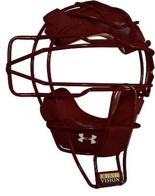 Under Armour Adult Maroon Pro Catcher's Face Mask Lightweight traditional mask. Moisture wicking fabric covers Under Armour exclusive energy absorbing foam. Dries quickly between innings. Patented I-Bar Vision face mask for increased strength, - Softball Catcher's Headgear - Softball Catcher's Headgear